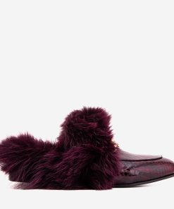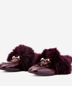 Vinci Leather Shoes The Izmir Burgundy Patent Leather Natural Fur Women Slipper | Women’s Shoes