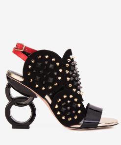 Vinci Leather Shoes The Infanta Black Spike Leather Ankle Strap Women Sandal | Women’s Shoes