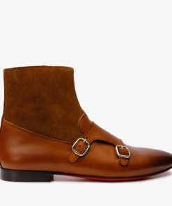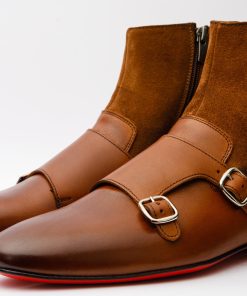 Vinci Leather Shoes Preston Tan Leather & Suede Double Monk Strap Ankle Men Boot | Men’s Shoes