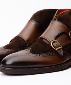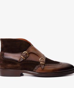 Vinci Leather Shoes The Albus Brown Leather & Suede Double Strap Monk Brogue Men Boot | Men’s Shoes