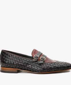 Vinci Leather Shoes The Vatra Black & Burgundy Woven Double Monk Strap Men Shoe | Men’s Shoes