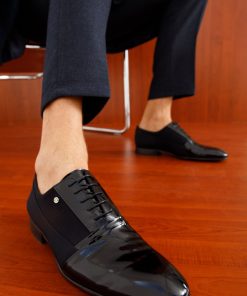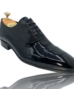 Vinci Leather Shoes Men’s The Lima Black Patent Leather Cap Toe Oxford Shoe Final Sale! | Black