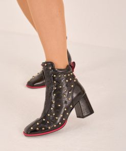 Vinci Leather Shoes The Infanta Black Spike Leather Block Heel Pump Women Shoe | Women’s Shoes