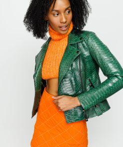 Vinci Leather Shoes The Mekke Pythn Skin Green Leather Women Jacket | Green | Women’s Shoes