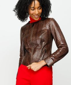 Vinci Leather Shoes The Mekke Pythn Skin Brown Leather Women Jacket | Brown | Women’s Shoes