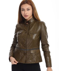 Vinci Leather Shoes The Shunk Pyhtn Khaki Leather Women Jacket | Khaki | Women’s Shoes