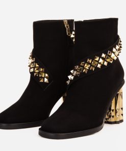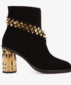 Vinci Leather Shoes The Metal Black Suede Leather Block Heel Women Boot | Women’s Shoes