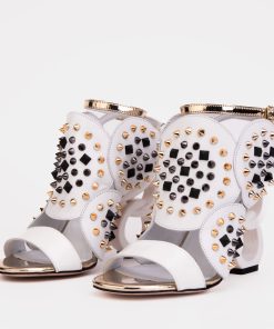 Vinci Leather Shoes The Infanta White Spike Leather Ankle Strap Women Sandal | Women’s Shoes