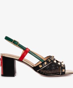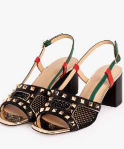 Vinci Leather Shoes The Infanta Black Spike Leather Ankle Strap Women Sandal | Women’s Shoes