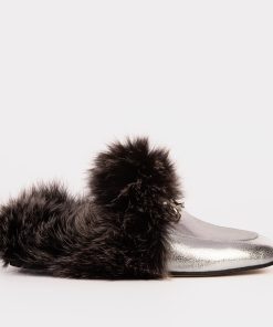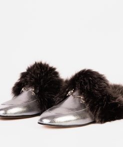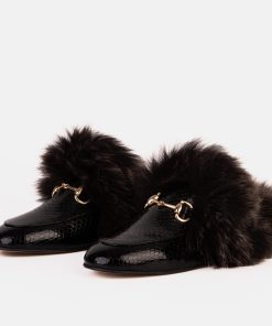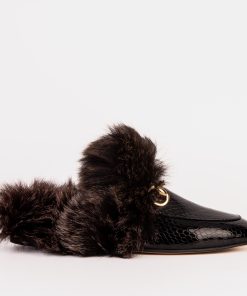 Vinci Leather Shoes The Izmir Black Patent Leather Natural Fur Women Slipper | Women’s Shoes