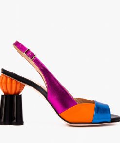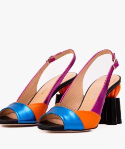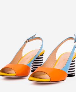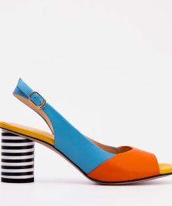 Vinci Leather Shoes The Spectrum Blue / Orange Block Heel Leather Women Sandal | Women’s Shoes