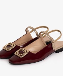 Vinci Leather Shoes The Rosalinda Burgundy Patent Leather Women Flat Slingback Shoe | Women’s Shoes