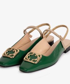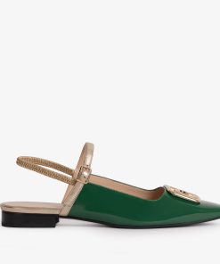 Vinci Leather Shoes The Rosalinda Green Patent Leather Women Flat Slingback Shoe | Women’s Shoes