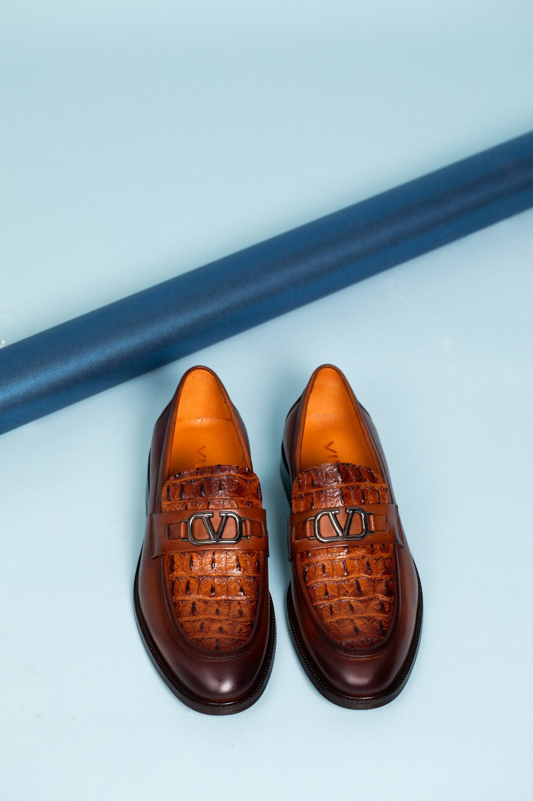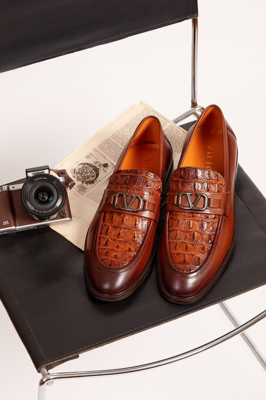 Amsterdam Brown Bit Loafer – Unparalleled Elegance with Crocodle-Inspired Detailing