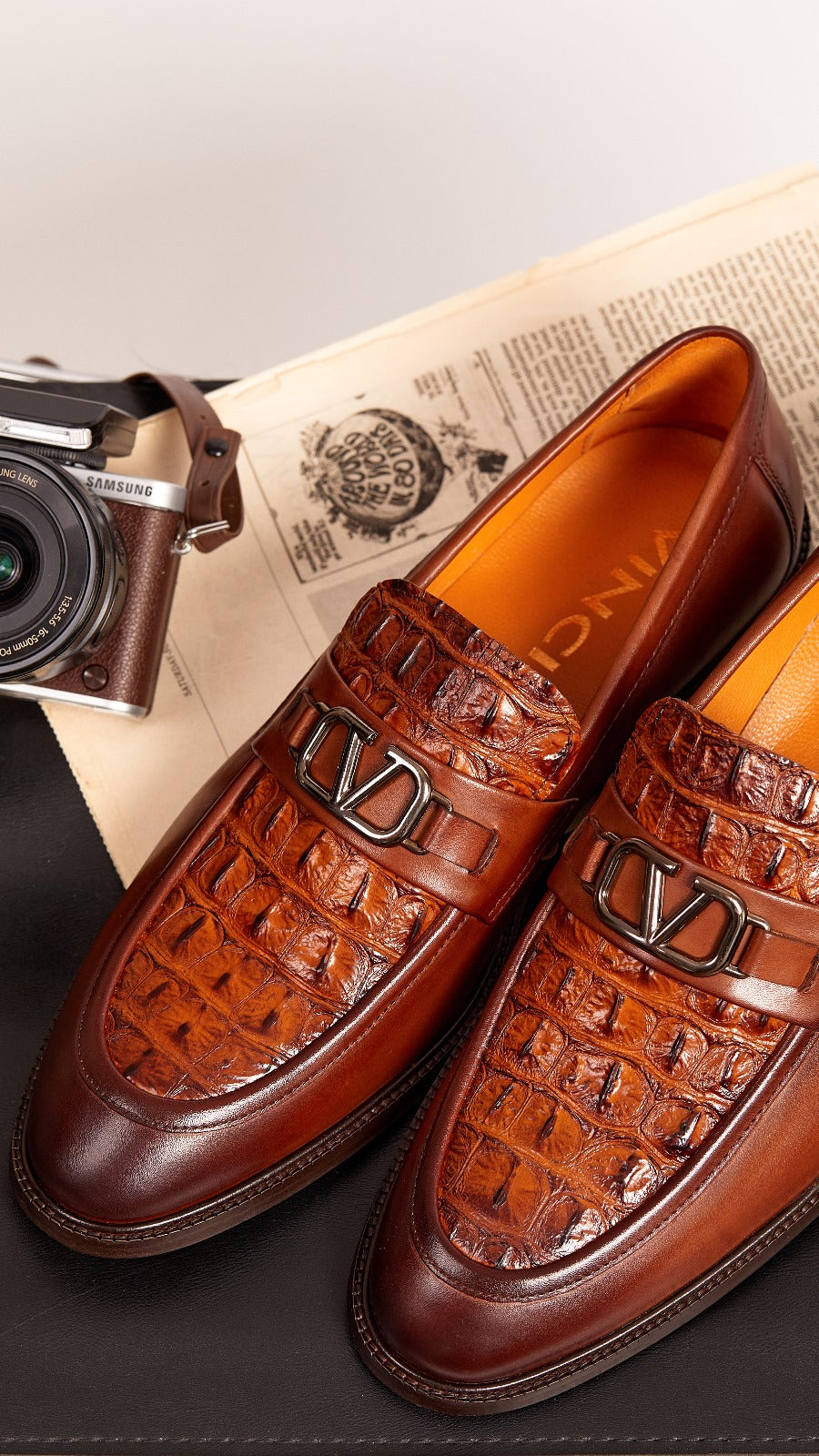 - The toe of the loafer is adorned with an exquisite crocodle-inspired pattern, adding a touch of luxury and sophistication to your ensemble.