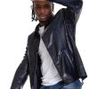 Vinci Leather Shoes Leather Jacket The Pitman Pythn Navy Blue Leather Men Jacket | Navy Blue