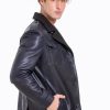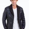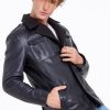 Vinci Leather Shoes Leather Jacket The Pitman Pythn Navy Blue Leather Men Jacket | Navy Blue