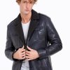 Vinci Leather Shoes Leather Jacket The Ponsonby Navy Blue Leather Shearling Men Jacket | Navy Blue