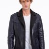 Vinci Leather Shoes Leather Jacket The Pitman Pythn Navy Blue Leather Men Jacket | Navy Blue
