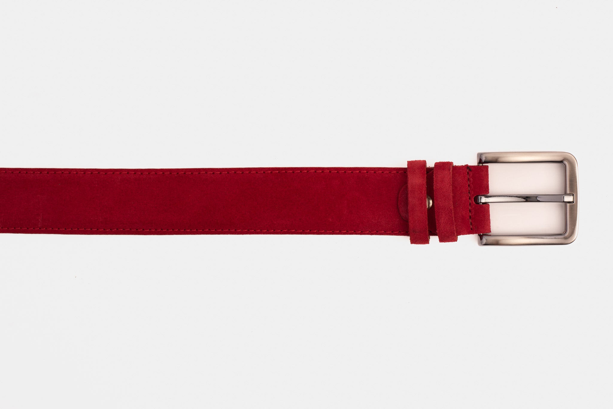 Transform your wardrobe with the Bari Red Leather Belt, where supreme suede craftsmanship, timeless red elegance, and adjustable comfort converge to redefine your style.