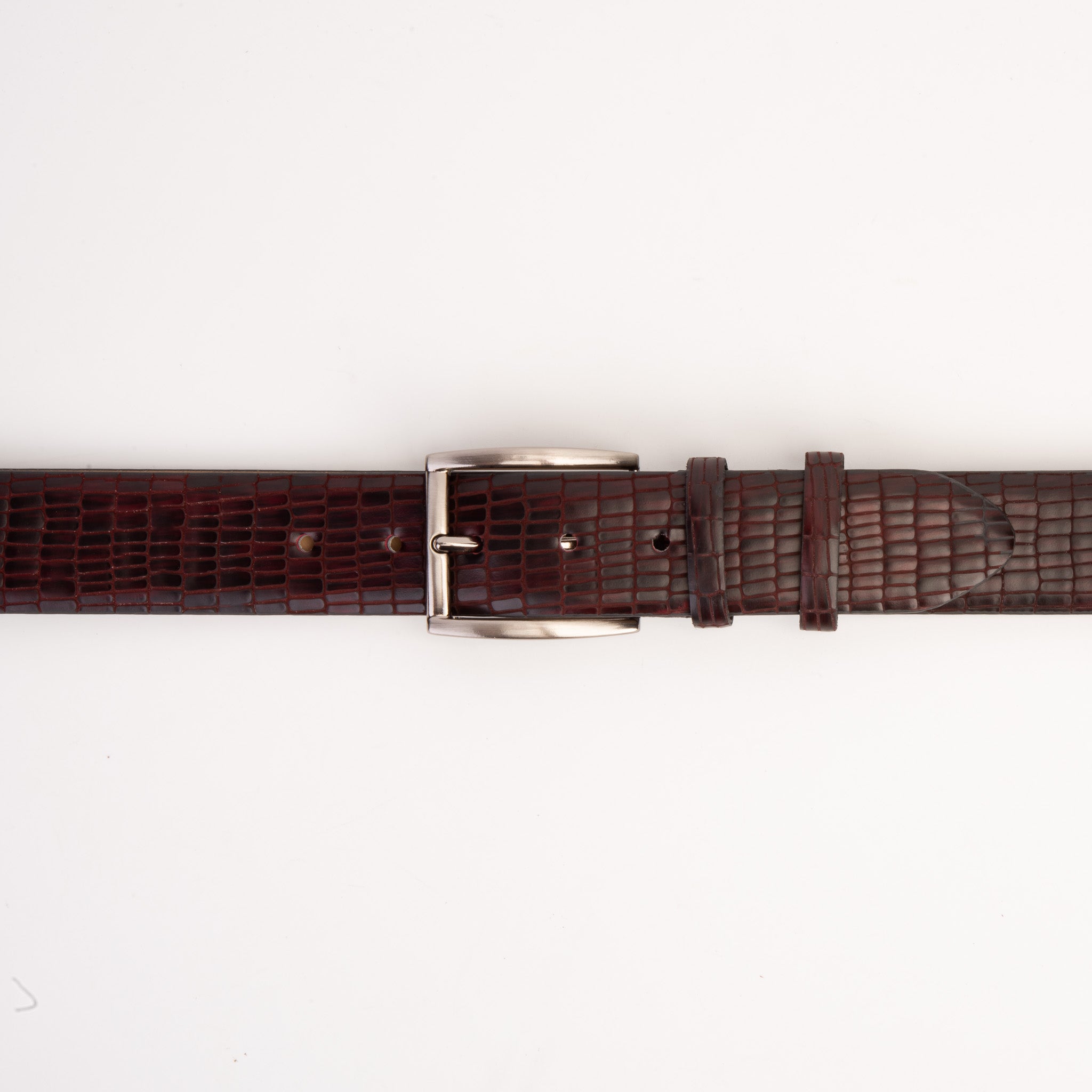 Elegant Burgundy Leather Texture: Showcasing a distinctive burgundy leather texture with a unique crocodile-like pattern, this belt is designed to align perfectly with the Empire Men’s Sneaker, adding a cohesive and stylish edge to your wardrobe.