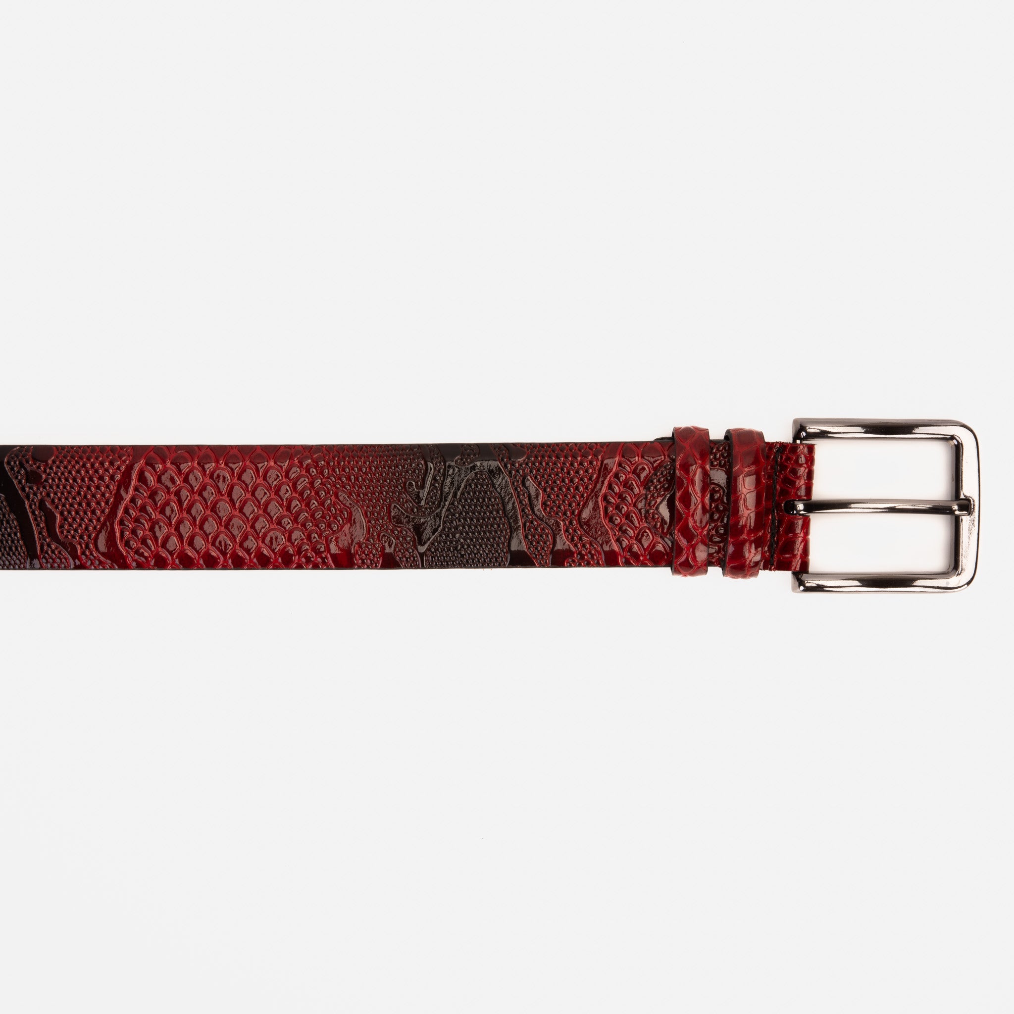 Make a statement with The Milano Red Leather Belt Limited Edition, where exquisite snake print detailing, sleek silver accents, and adjustable comfort combine to redefine sophistication.