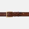 Complete your impeccable look with the Strat tan coordinating belt, meticulously designed to complement the Strat tan dress shoes. Crafted from 100% premium tan calf leather, this belt adds a touch of refinement to your ensemble. The gold buckle detail enhances the elegance of both the belt and the Strat tan dress shoes, creating a seamless and sophisticated appearance.