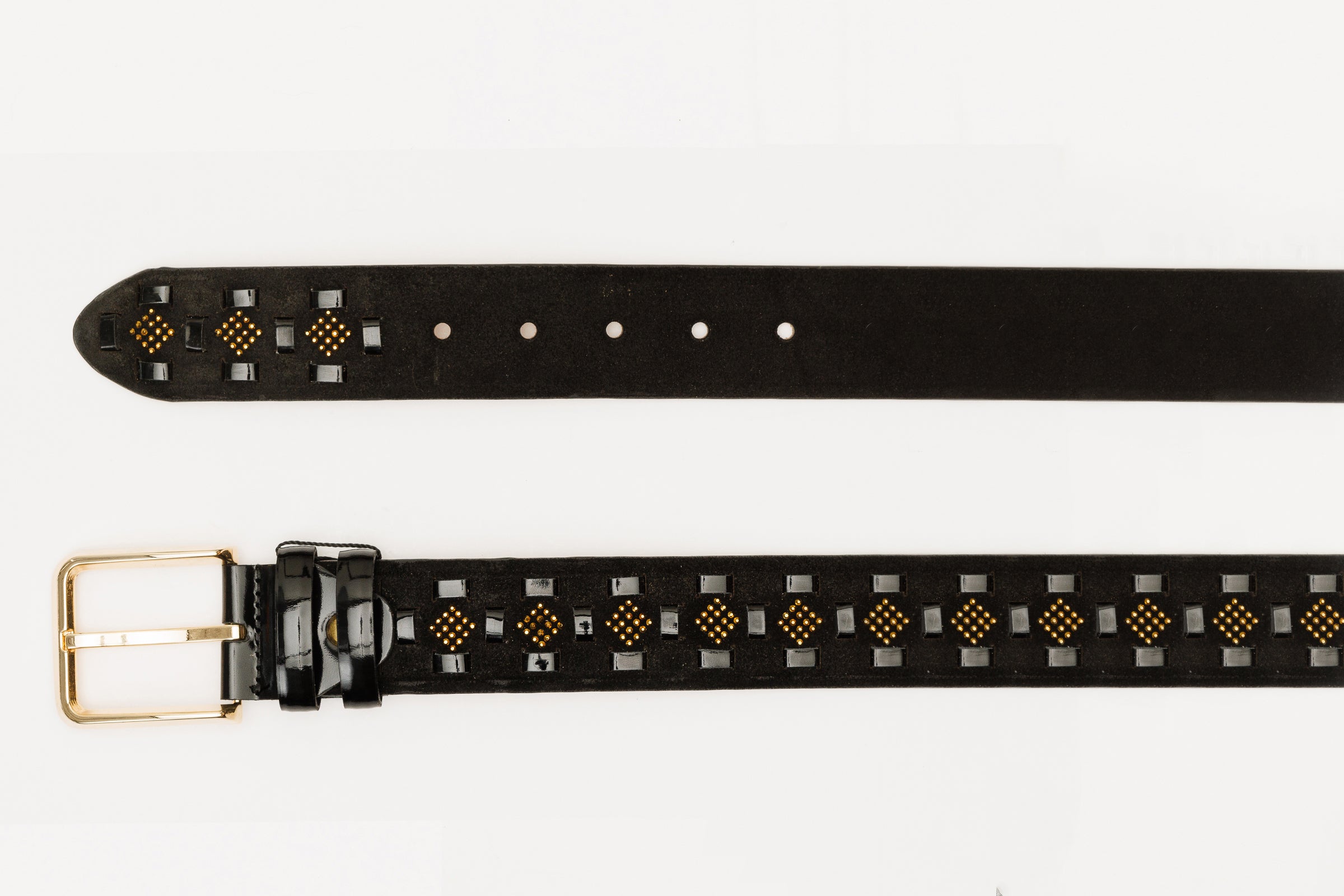 3. Velvet with Patent Leather Weave Detail: Velvet with patent leather weave detail takes the belt to the pinnacle of sophistication.