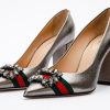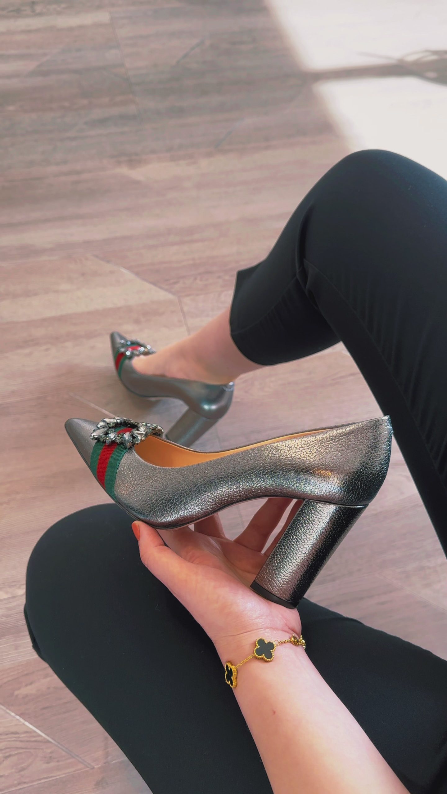 Chic Detailing with Silver Jewelry: The silver jewelry on the fabric adds a radiant detail, making the Afega Silver Leather Block Heel Pump a standout choice for those who appreciate distinct elegance.