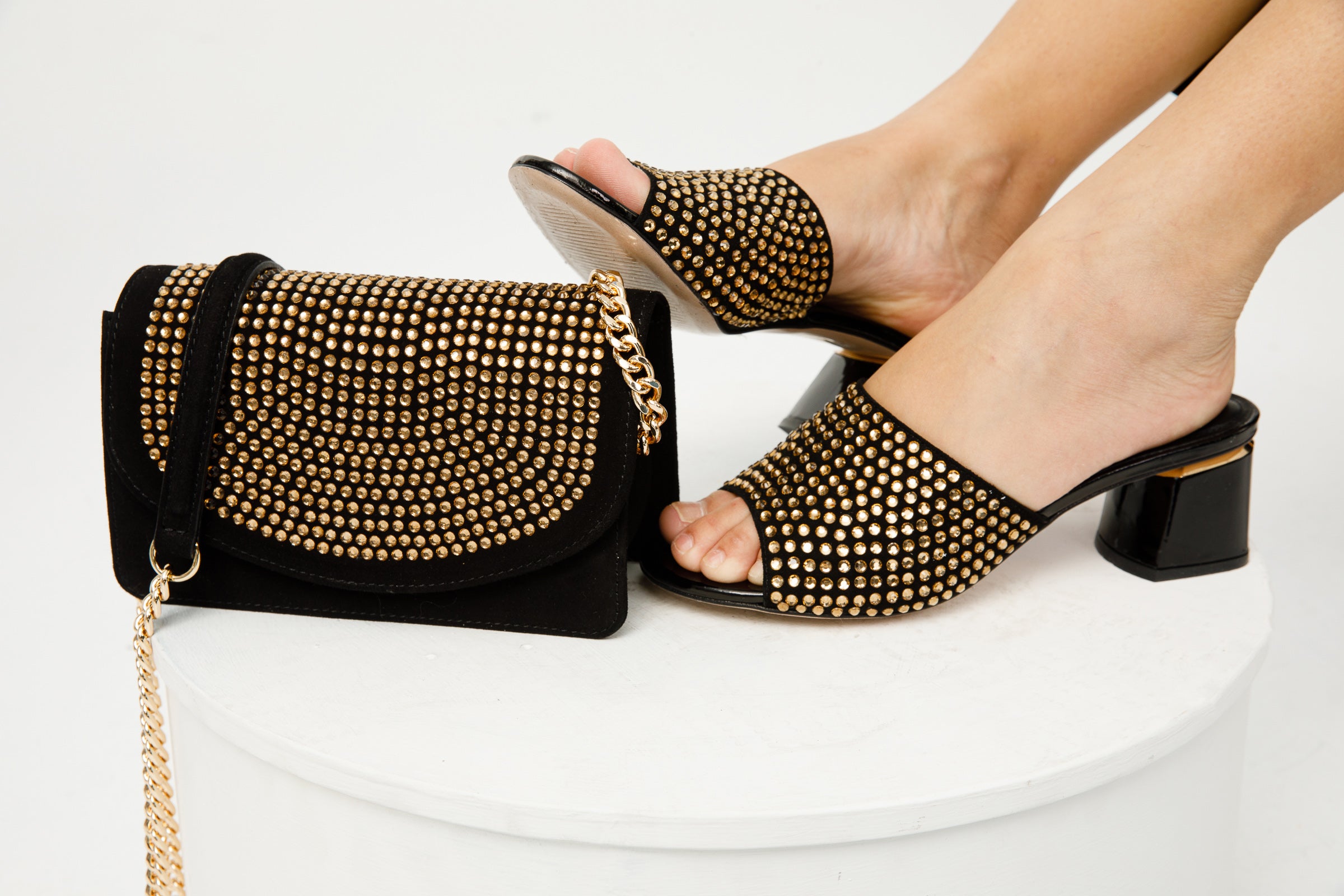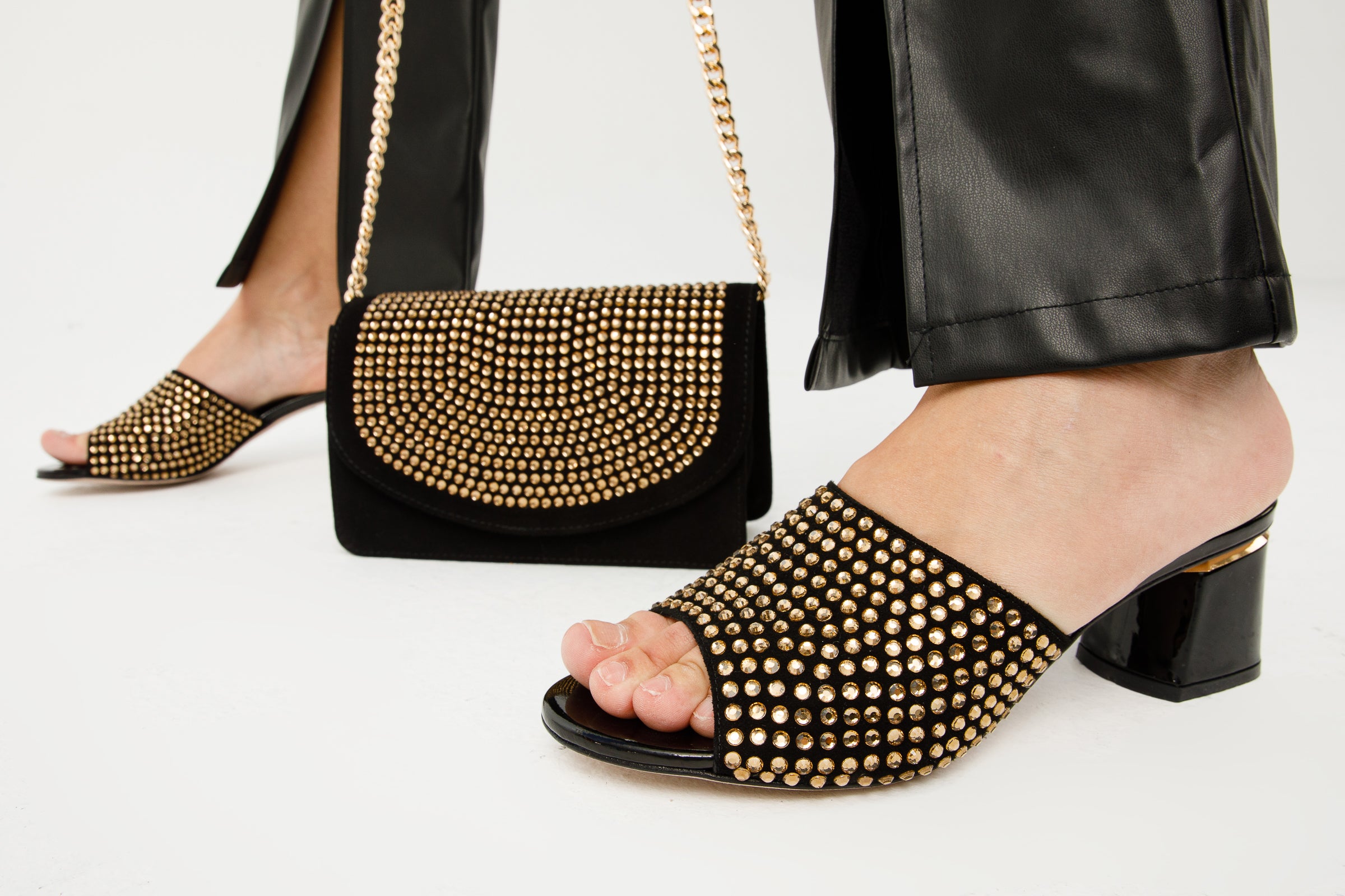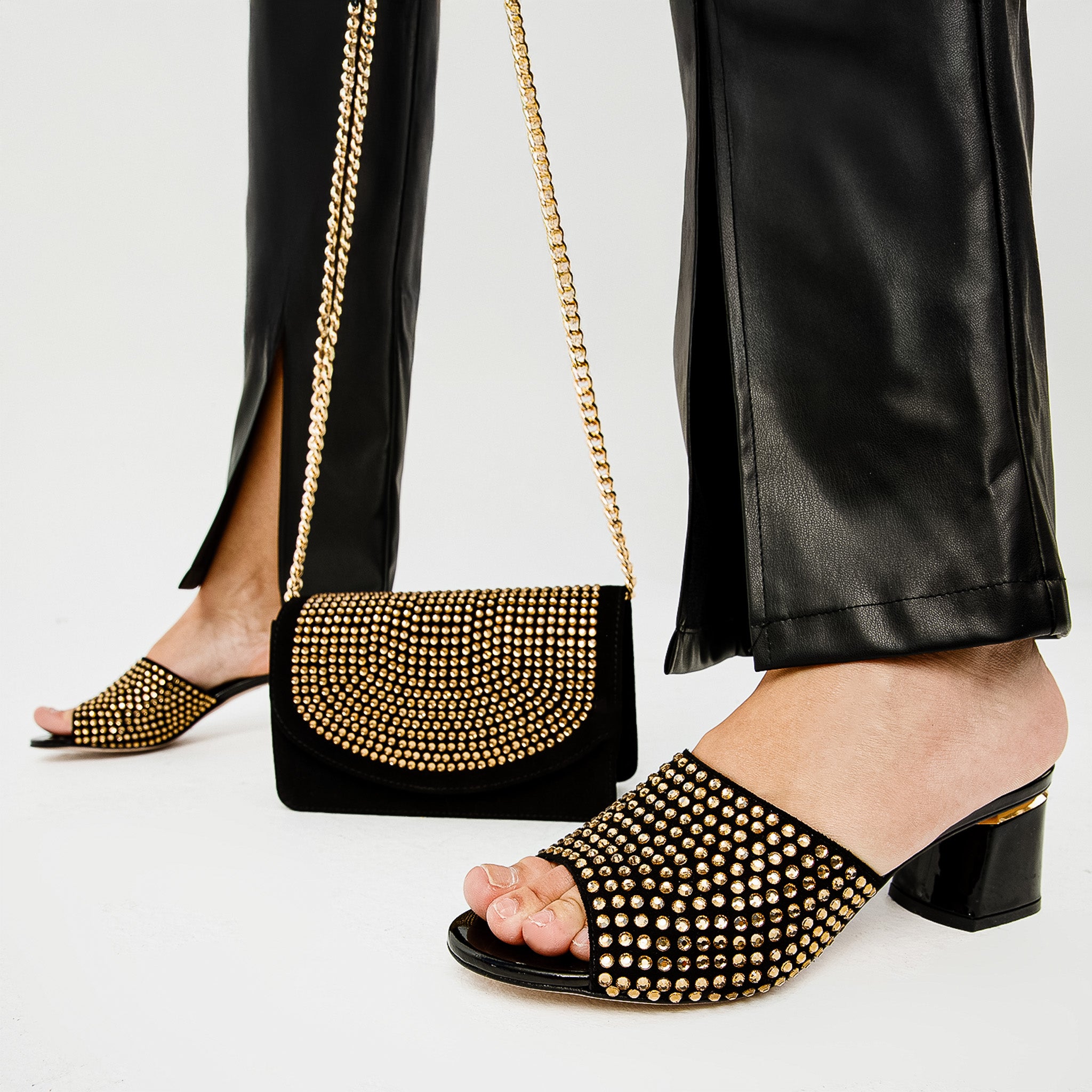 Perfect Harmony with Ailano Black Glitter Leather Handbag: Pair these sandals with the separately available Ailano Black Glitter Leather Handbag, featuring the same design, for a perfectly coordinated ensemble.
