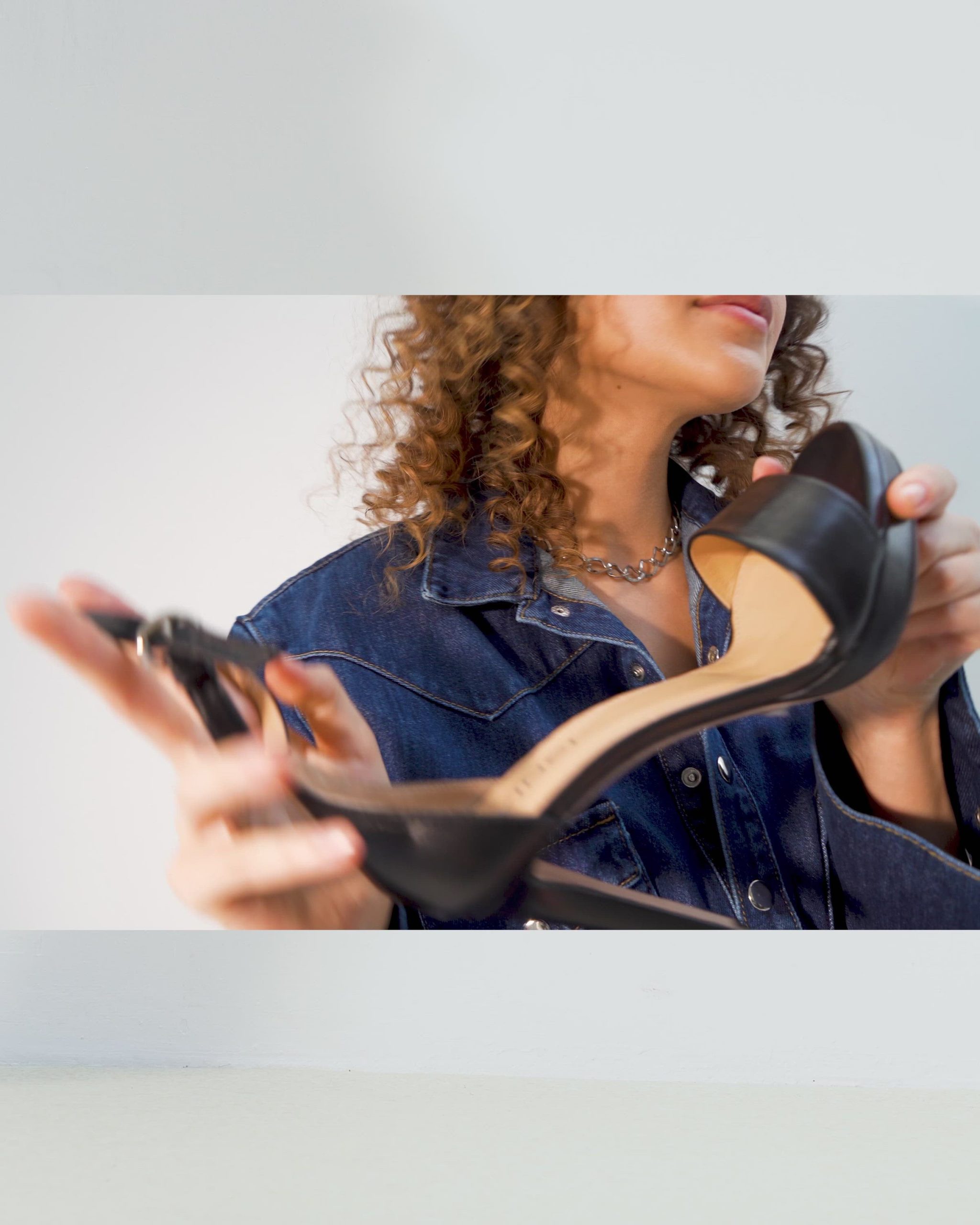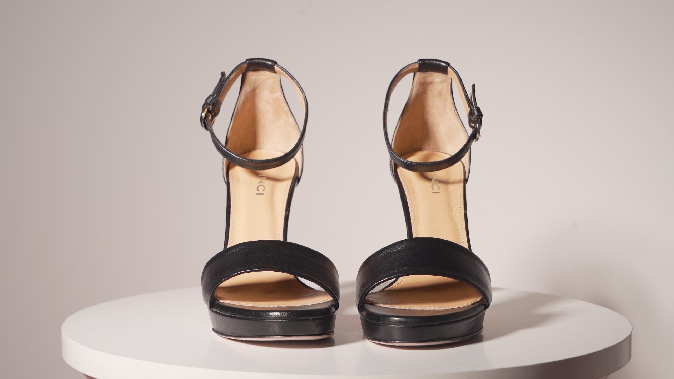 Step into Elegance: Aksu Black Leather Ankle Strap Women Sandal