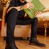 Vinci Leather Shoes The Wellington Black Handwoven Leather Men Boot With A Zipper | Men’s Shoes
