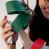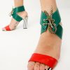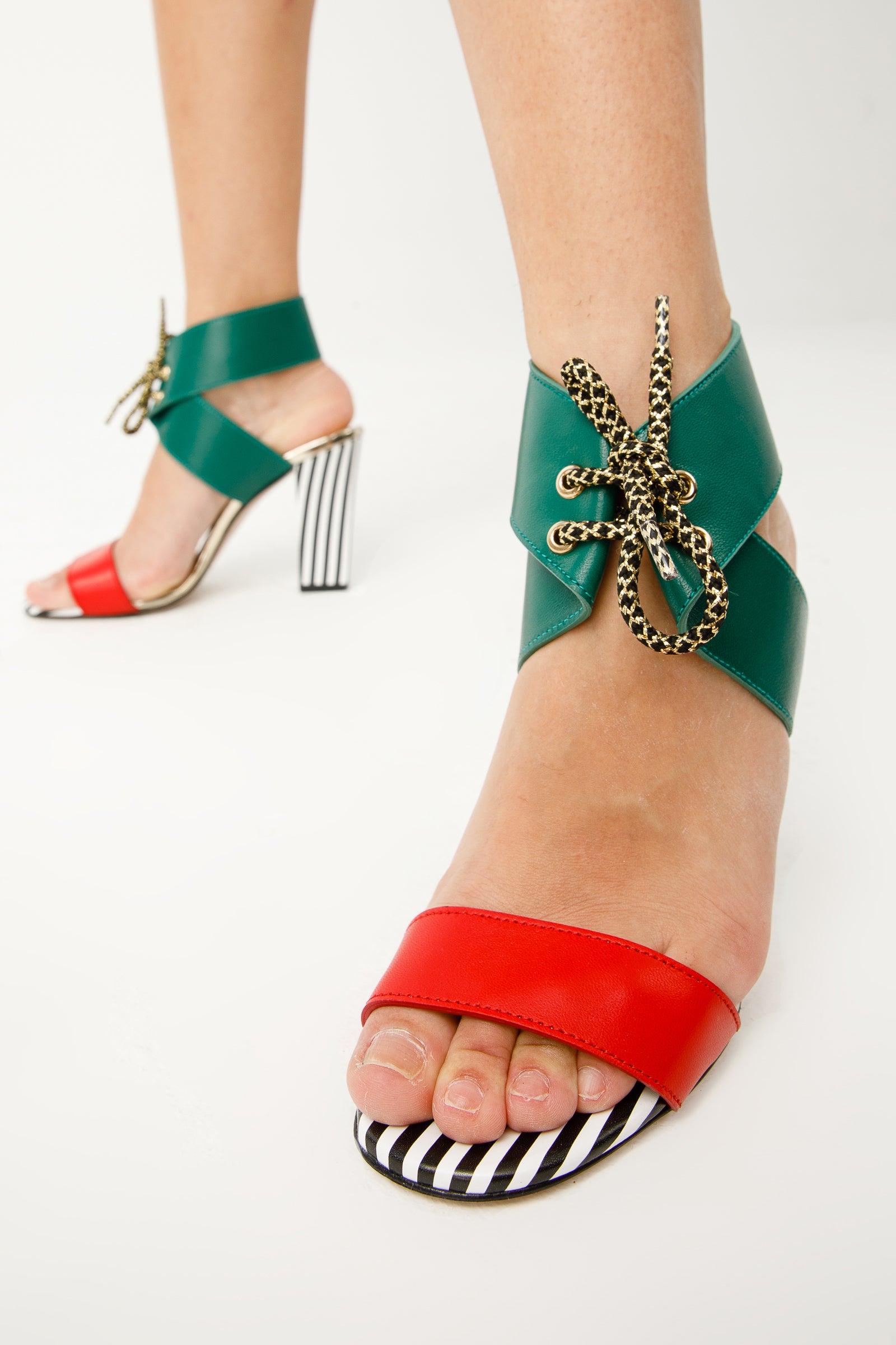 Bloke Ankle Strap Multicolor Leather Women Sandal: Dynamic Green & Red Fusion