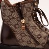 - The blend of leather, fabric, and buckle detail creates a distinctive and fashionable look.