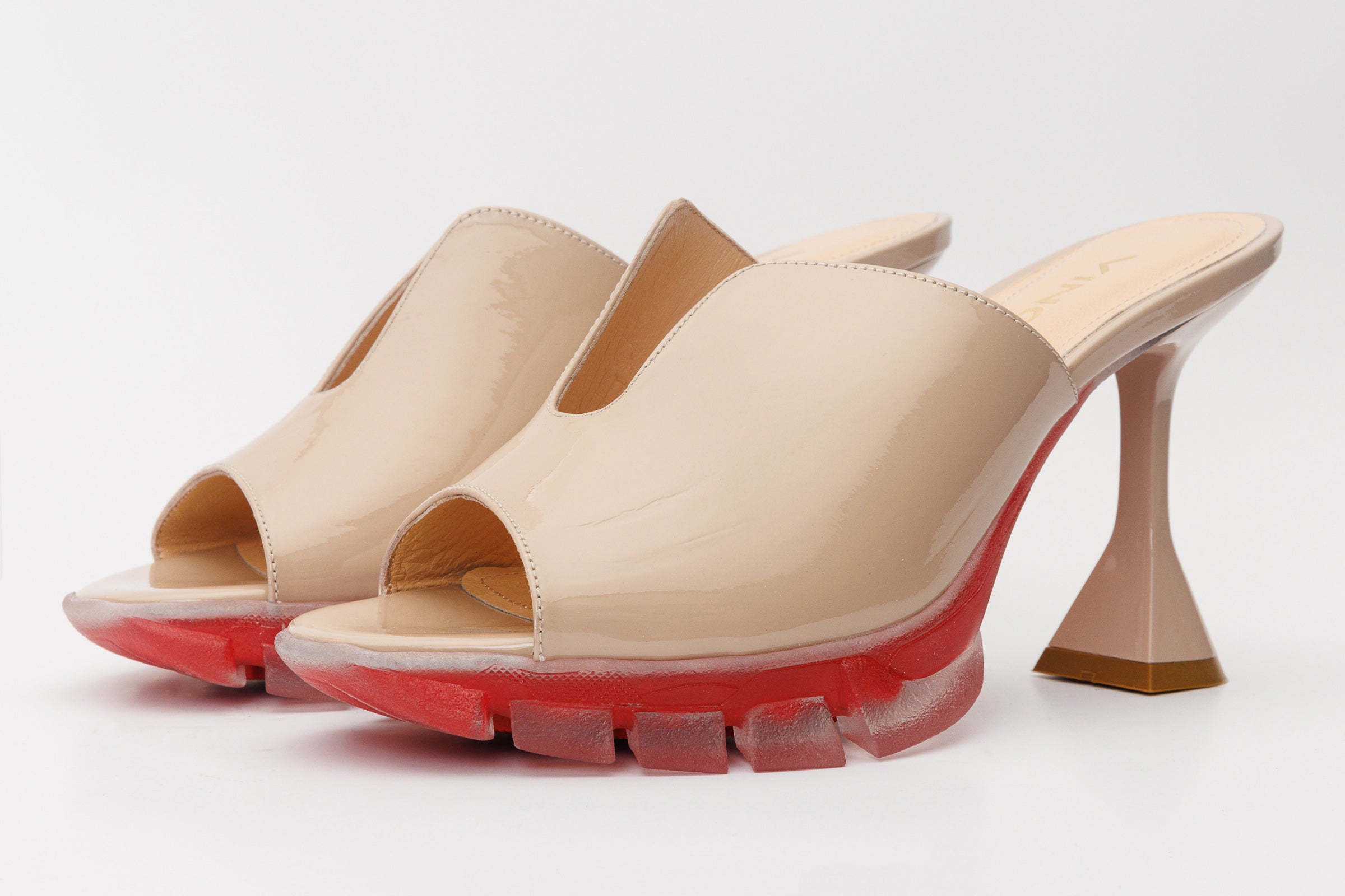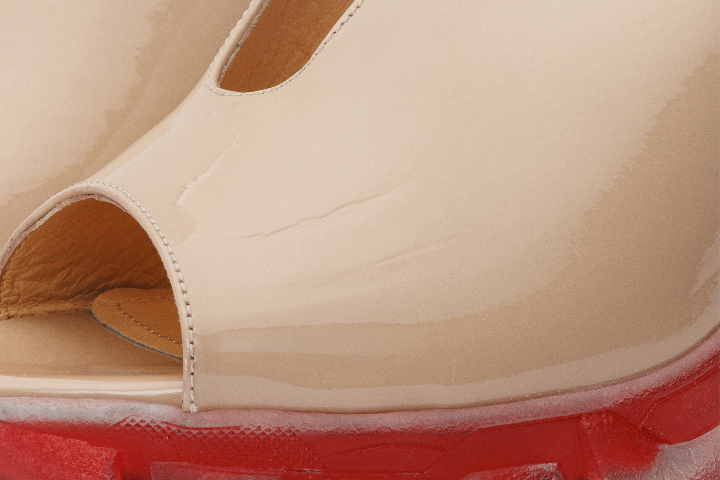 Elegant Cream Patent Leather Design: Crafted from high-quality cream patent leather, the sandal boasts an elegant and sophisticated design, adding a timeless touch of modern glamour to your ensemble.
