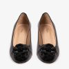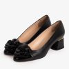 Elegant Floral Detail: The upper part of the shoe is adorned with a simple, yet sophisticated flower detail made from plain black patent leather, adding a unique and feminine touch without being overly ornate.