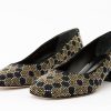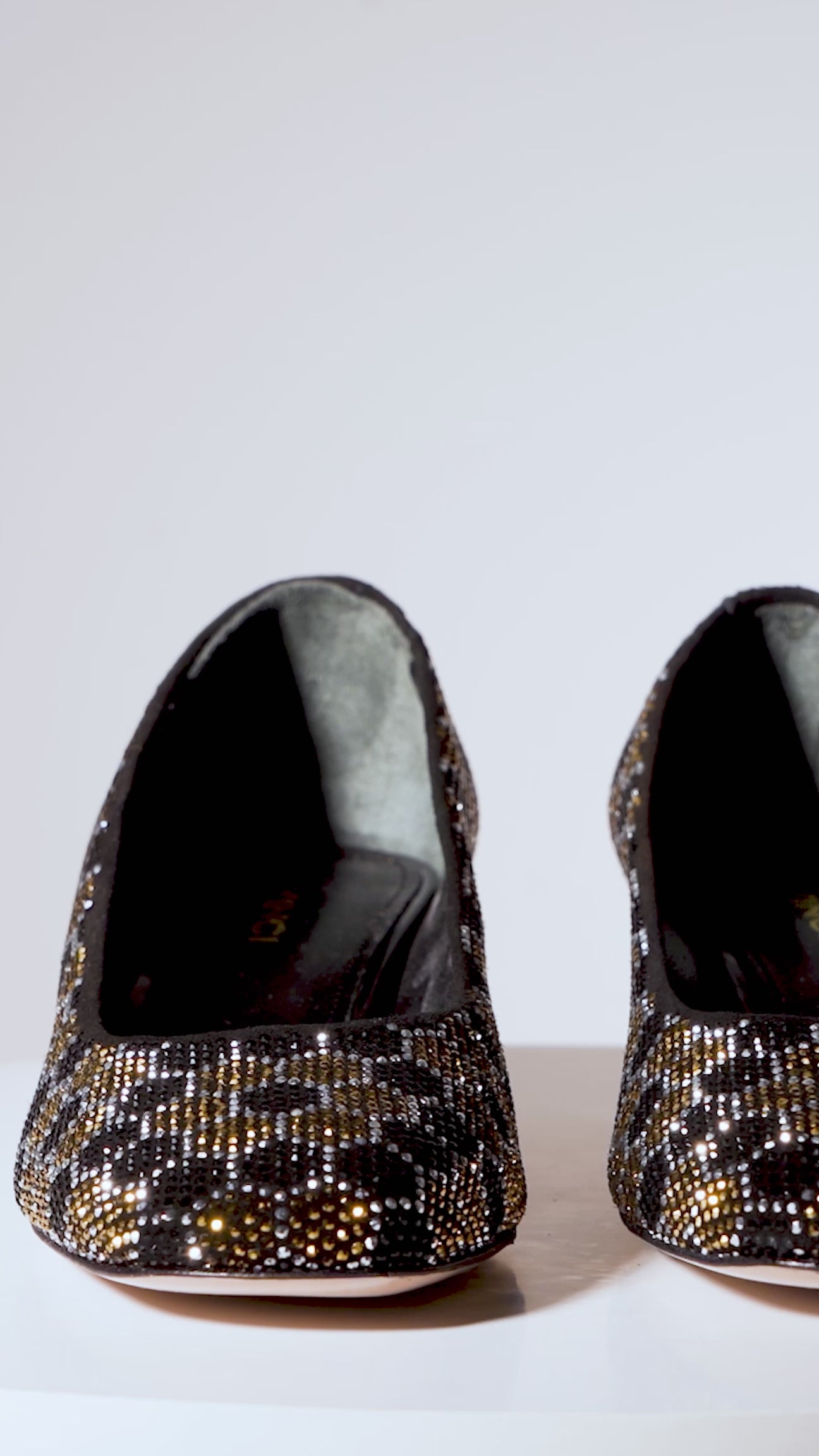 Gilded Luxury: Immerse yourself in opulence with Doha Gold Elegance, a magnificent pump crafted from 100% suede dana leather, adorned with meticulously hand-applied golden gemstones that shimmer and shine with every step.