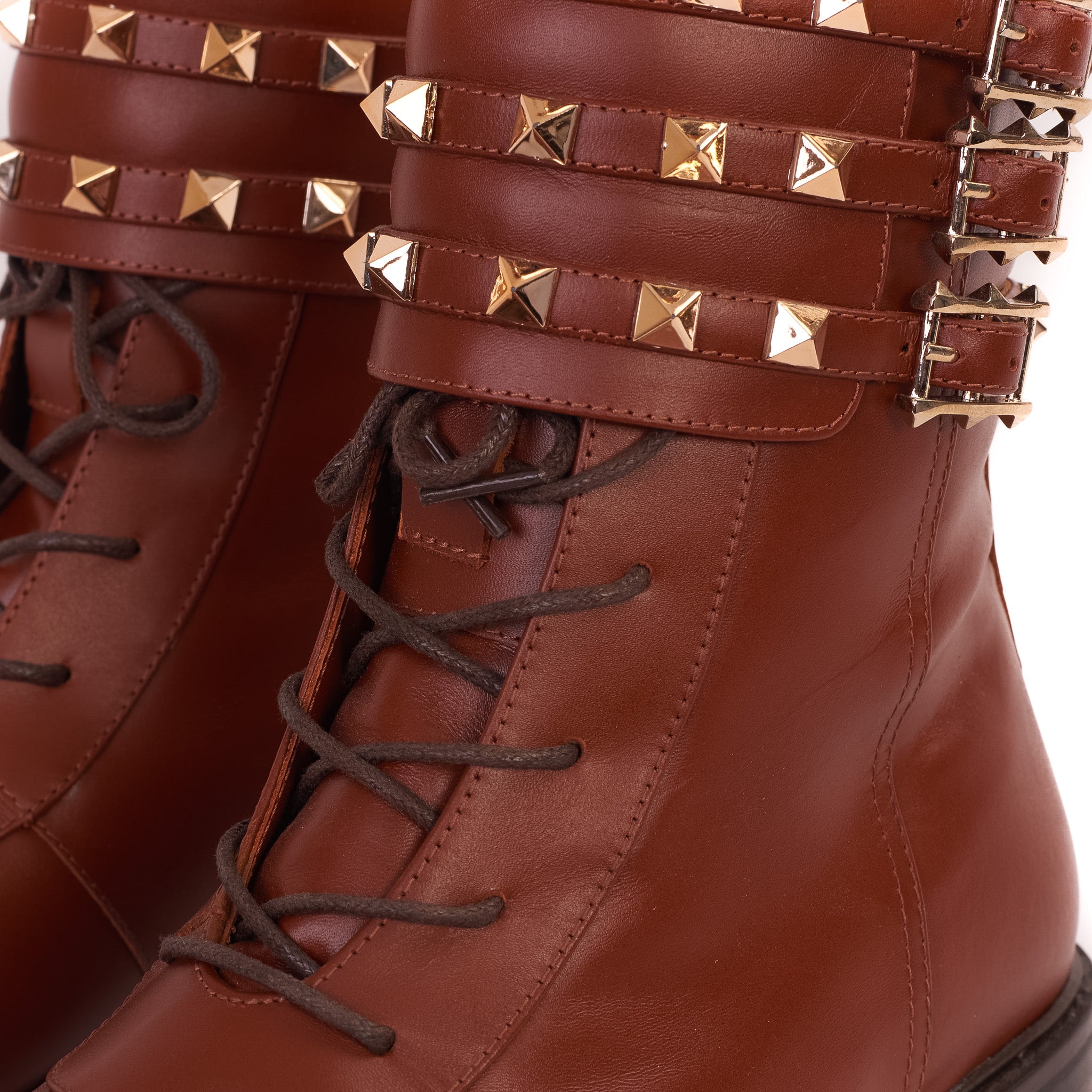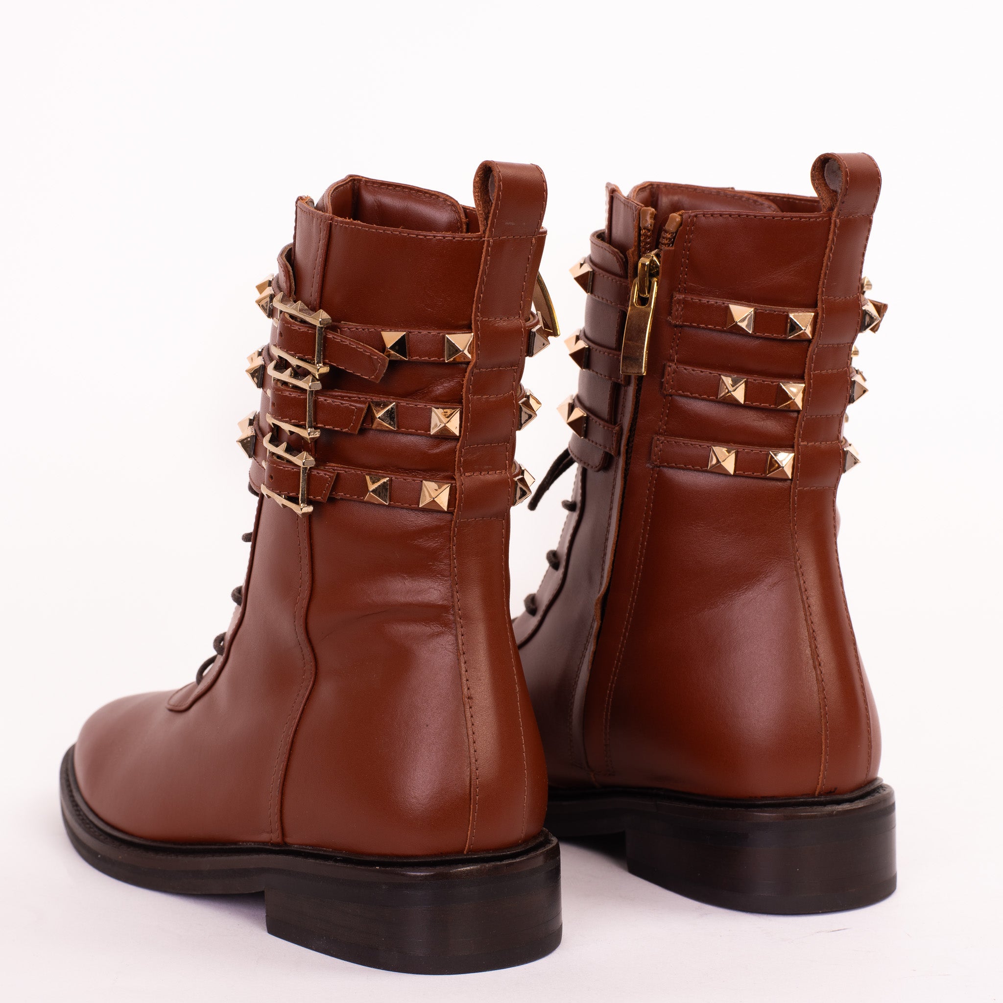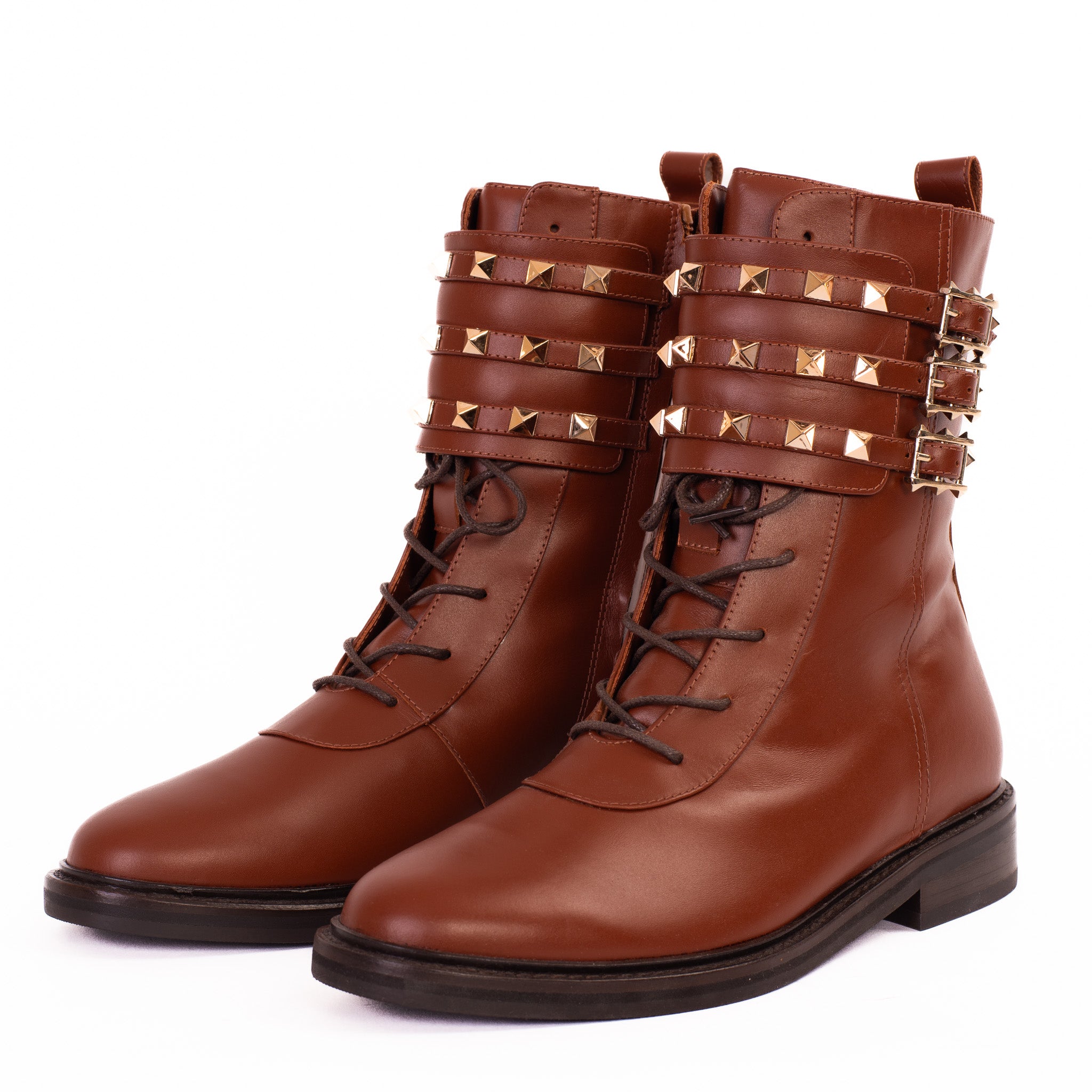 Vinci Leather Shoes The Doncaster Brown Leather Lace-up Mid Calf Women Boot With A Side Zipper | Women’s Shoes