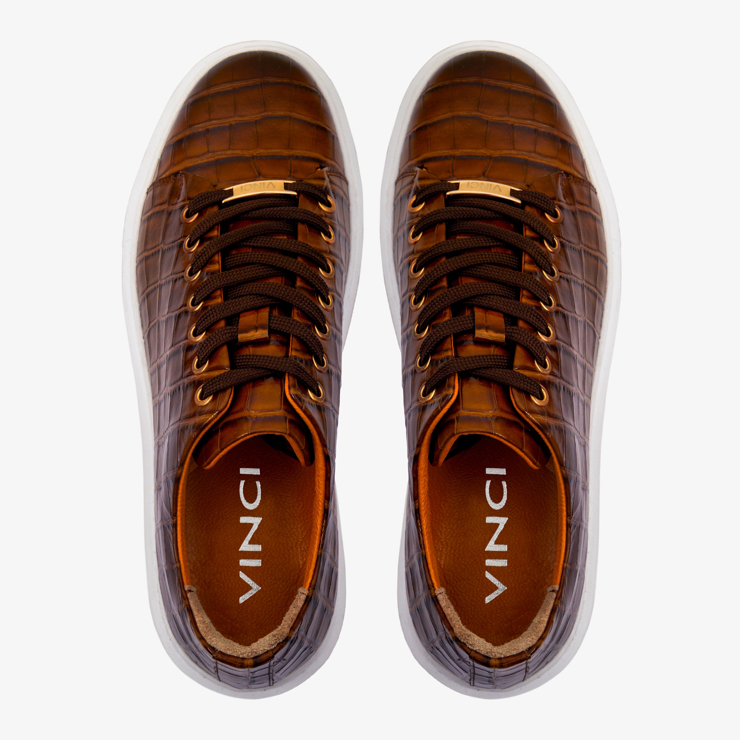 The Dublin sneaker comes to life through meticulous craftsmanship, produced from high-quality calf leather. To add uniqueness to the leather, we adorned it with a distinctive crocodile-inspired print. The interior lining is also crafted from leather and features a natural orthopedic pad, ensuring extreme comfort. Supported by a white poly outsole, the design focuses on lightweight comfort that is barely noticeable during wear.