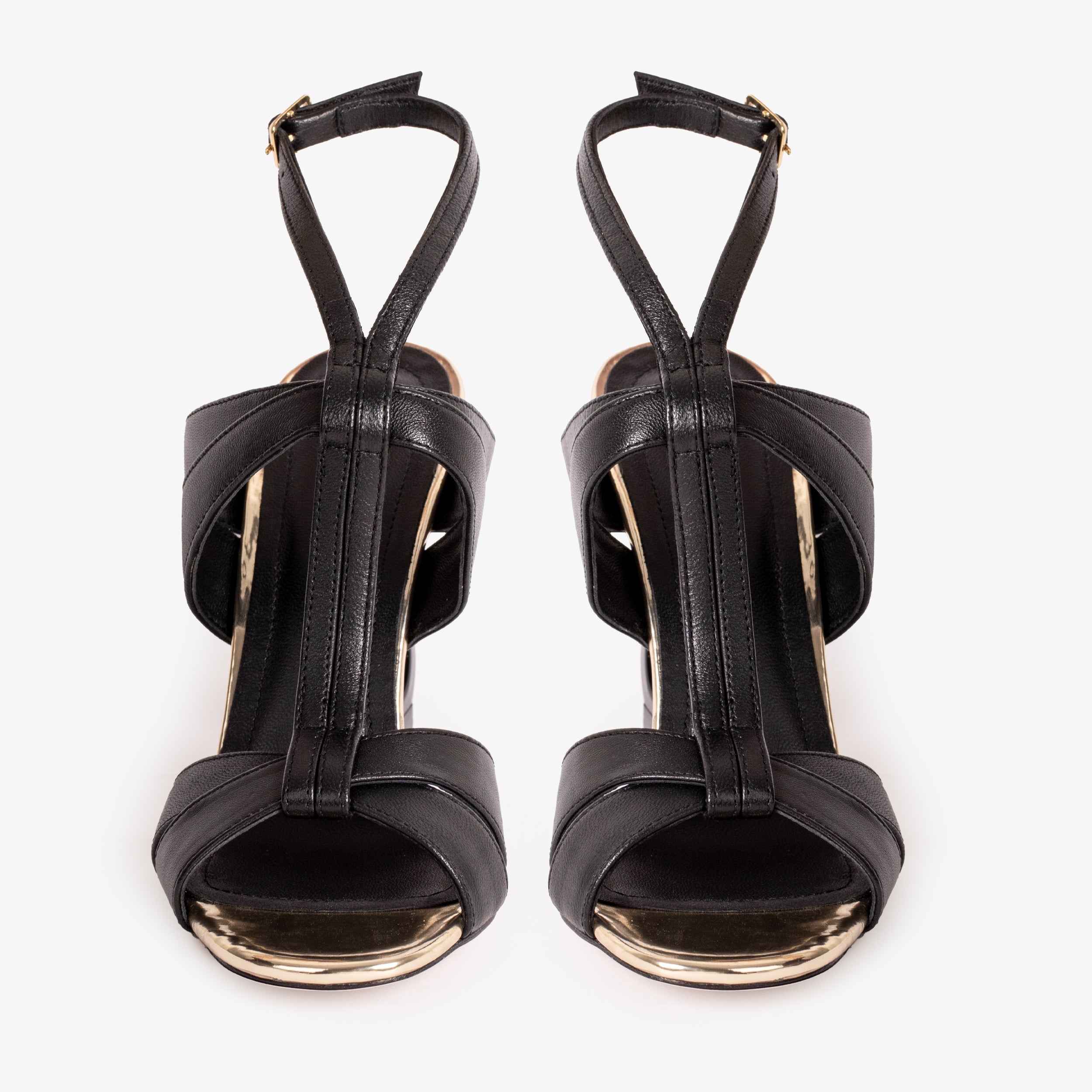 Striking Black and Gold Elegance: The Duffryn T-Strap Leather Women Sandal combines the striking elegance of black and gold, creating a statement piece for your wardrobe.