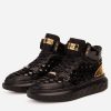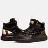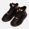 The Eugene Black & Gold Woven Leather High-Top Men Sneaker: Elevate Your Style with Handcrafted Luxury