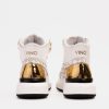 Intricate Woven Leather Detailing: Elevating its allure, the sneaker boasts intricate handwoven white suede and gold leather detailing on the toe and side sections, creating a captivating contrast and adding a touch of sophistication to your ensemble.