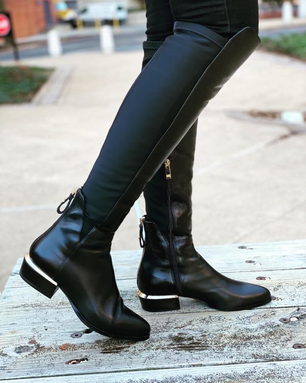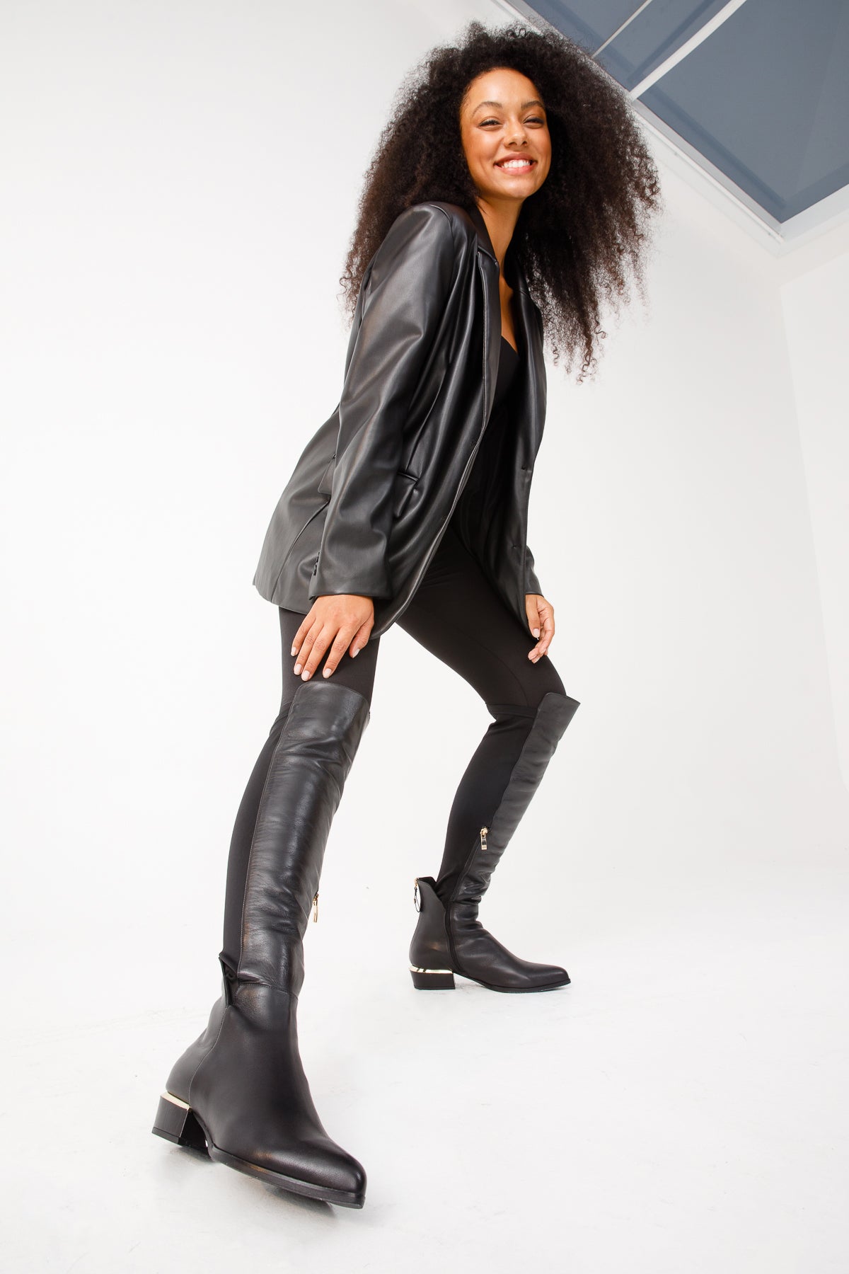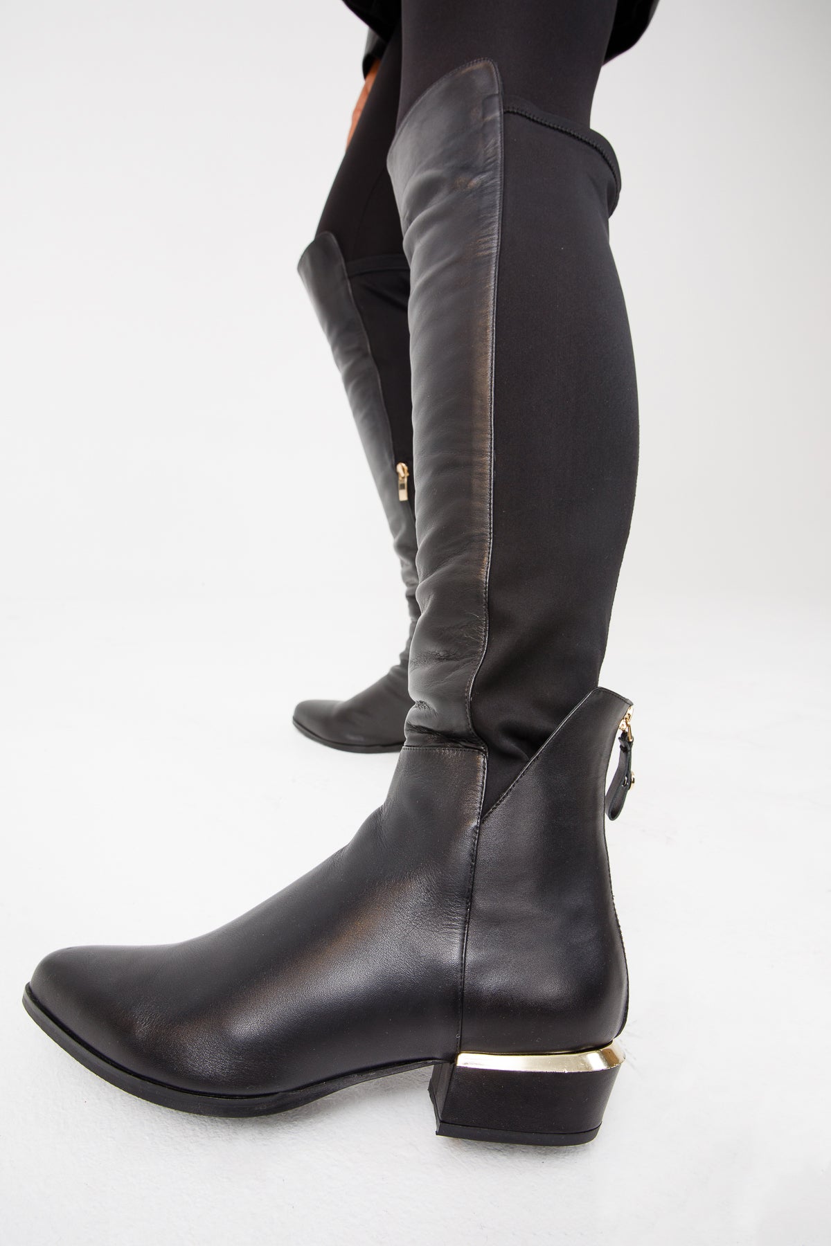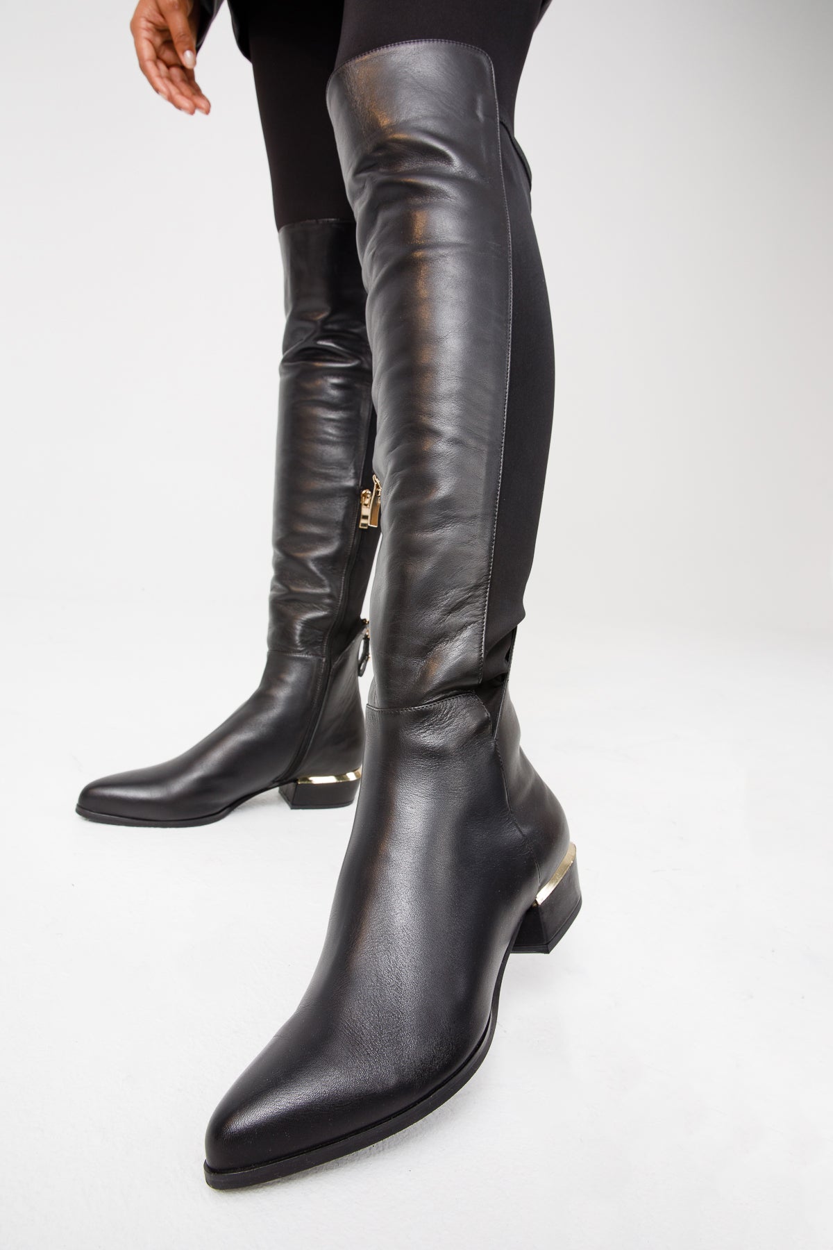 Vinci Leather Shoes The Fairoks Black Leather Pointy Toe Knee High Women Boot | Women’s Shoes