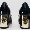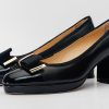 Gold Buckle Embellishments: Gold buckles at both the cap toe and the heel provide a luxurious finish, enhancing the overall allure of the Fano Black Leather Cap Toe Block Heel Pump.