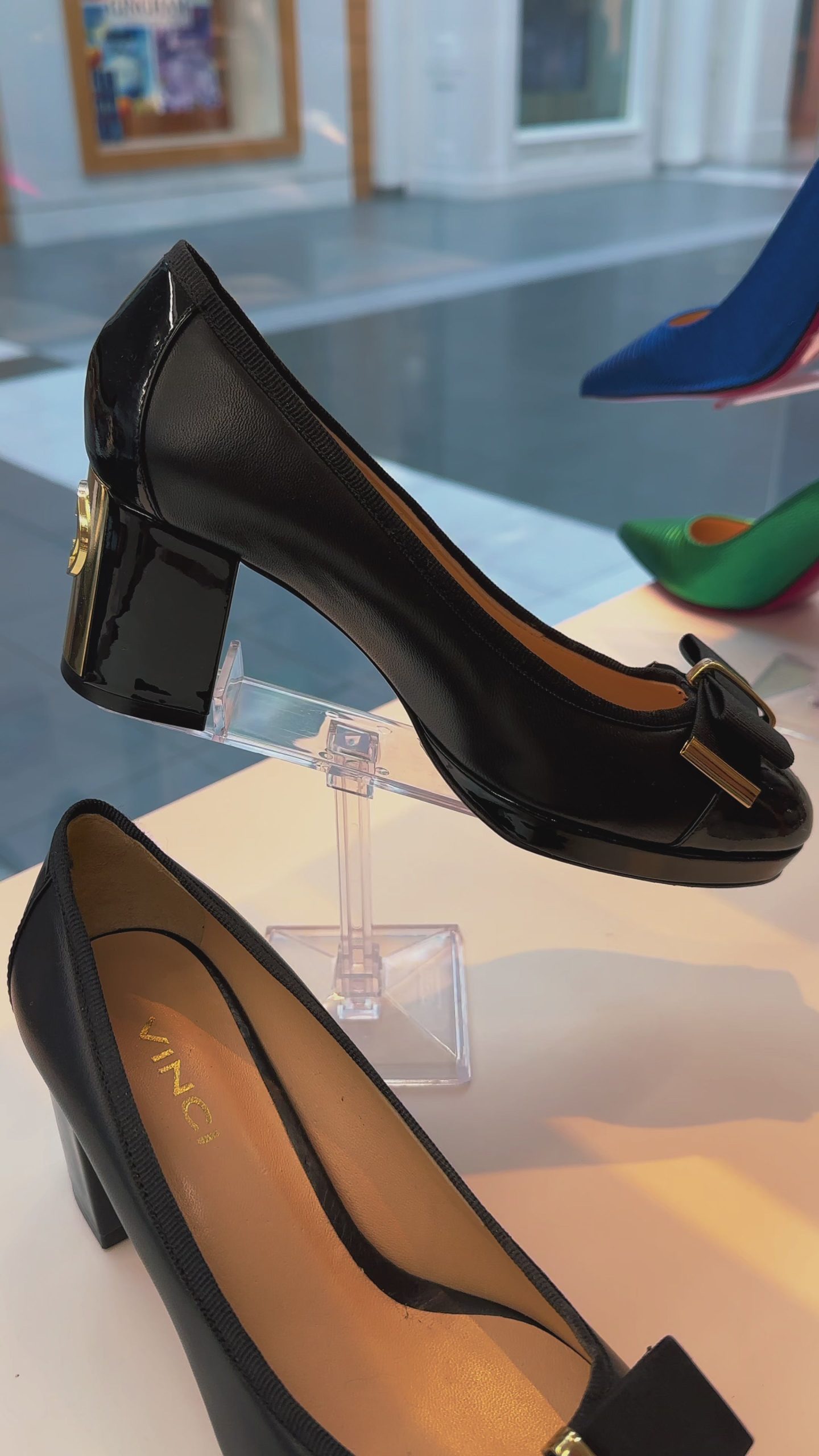 Graceful Bow Accent: A tastefully crafted fabric bow graces the front of the pump, creating a charming and graceful accent that adds a touch of femininity.