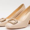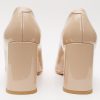 Chic Block Heel Design: The Ferrara Cream Patent Leather Block Heel Pump features a chic block heel design, adding both style and stability to your every step.