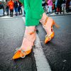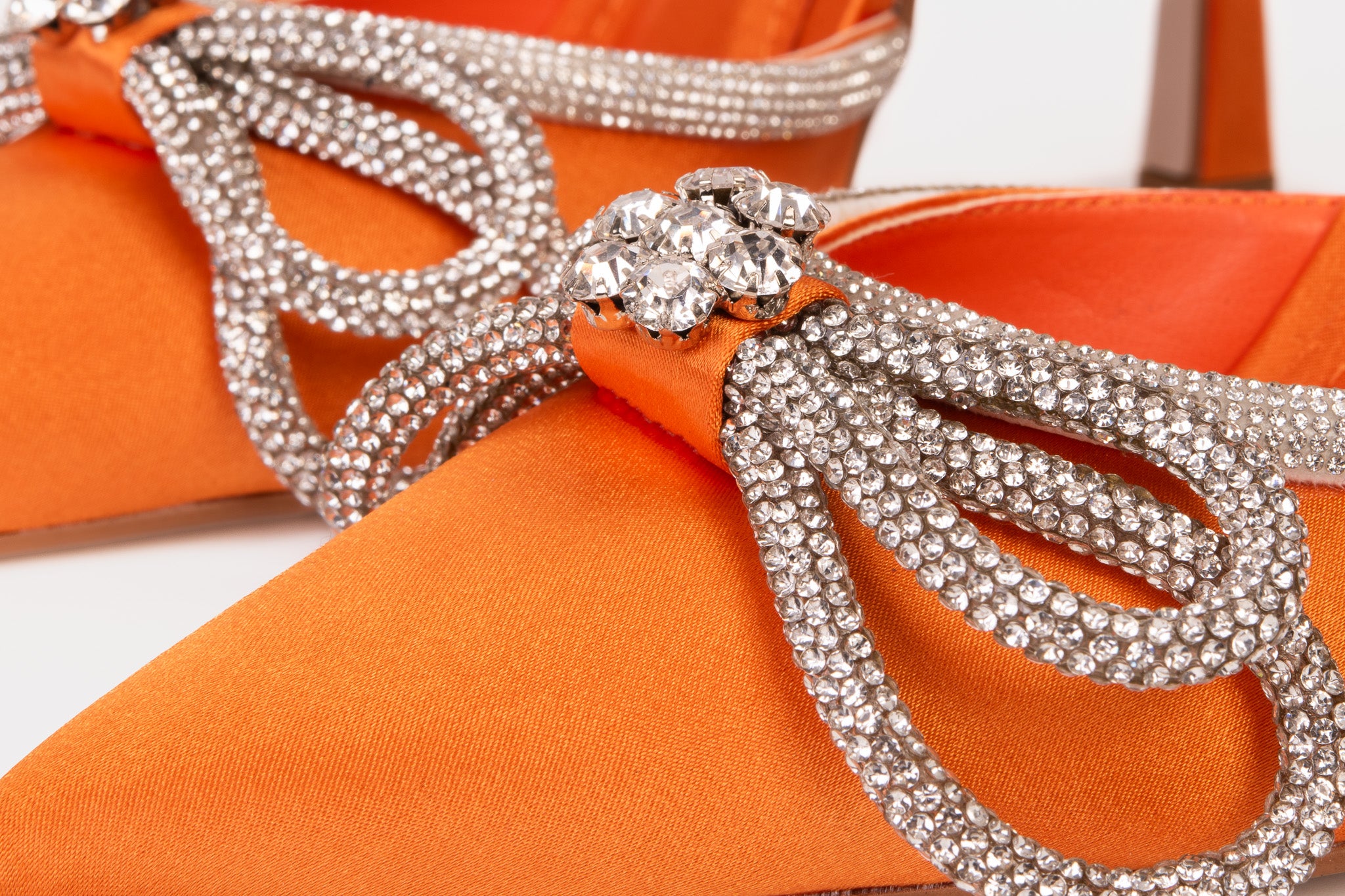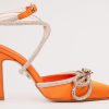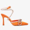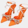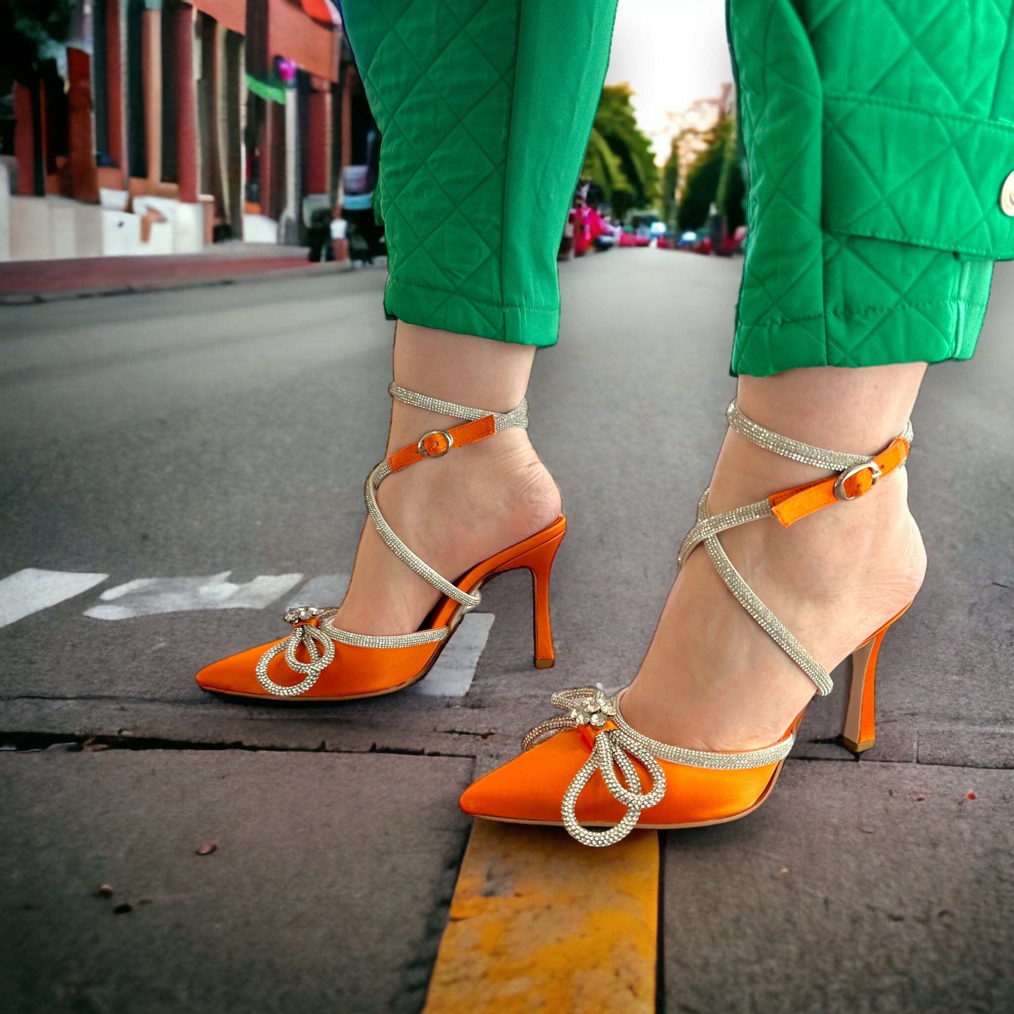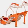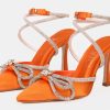Elegance in Citrus: Floransa Orange Leather Pointy Toe Ankle Strap Sandal