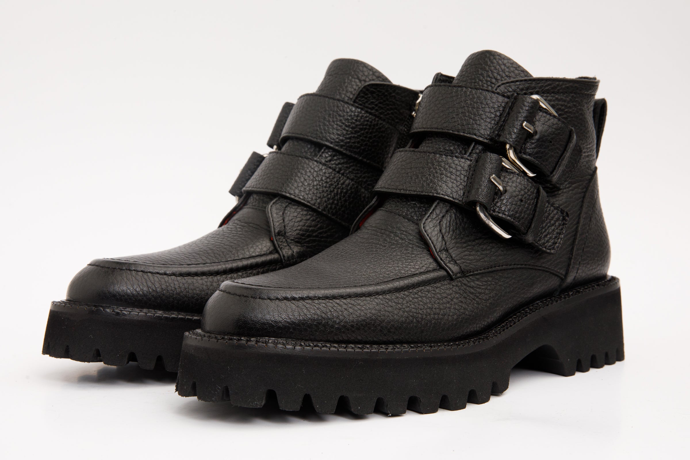 Step into sophistication and embrace comfort with the Harry Black Leather Double Monk Ankle Women Boot – where style meets craftsmanship in every step.