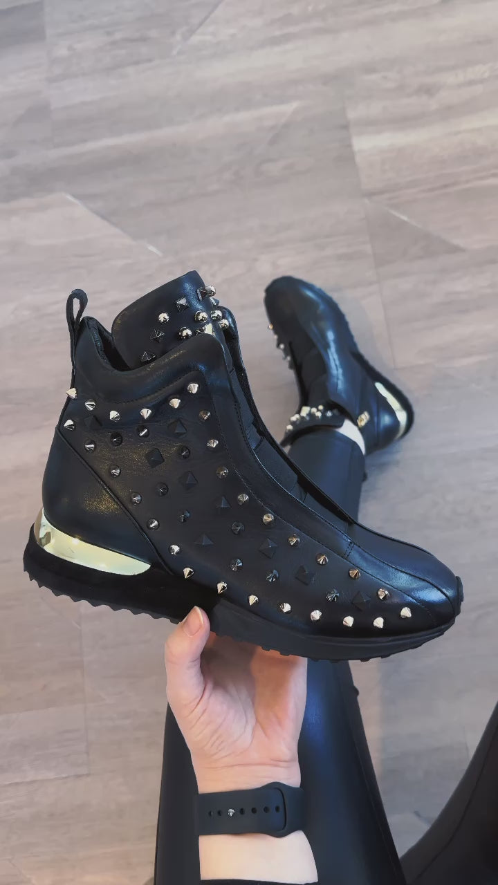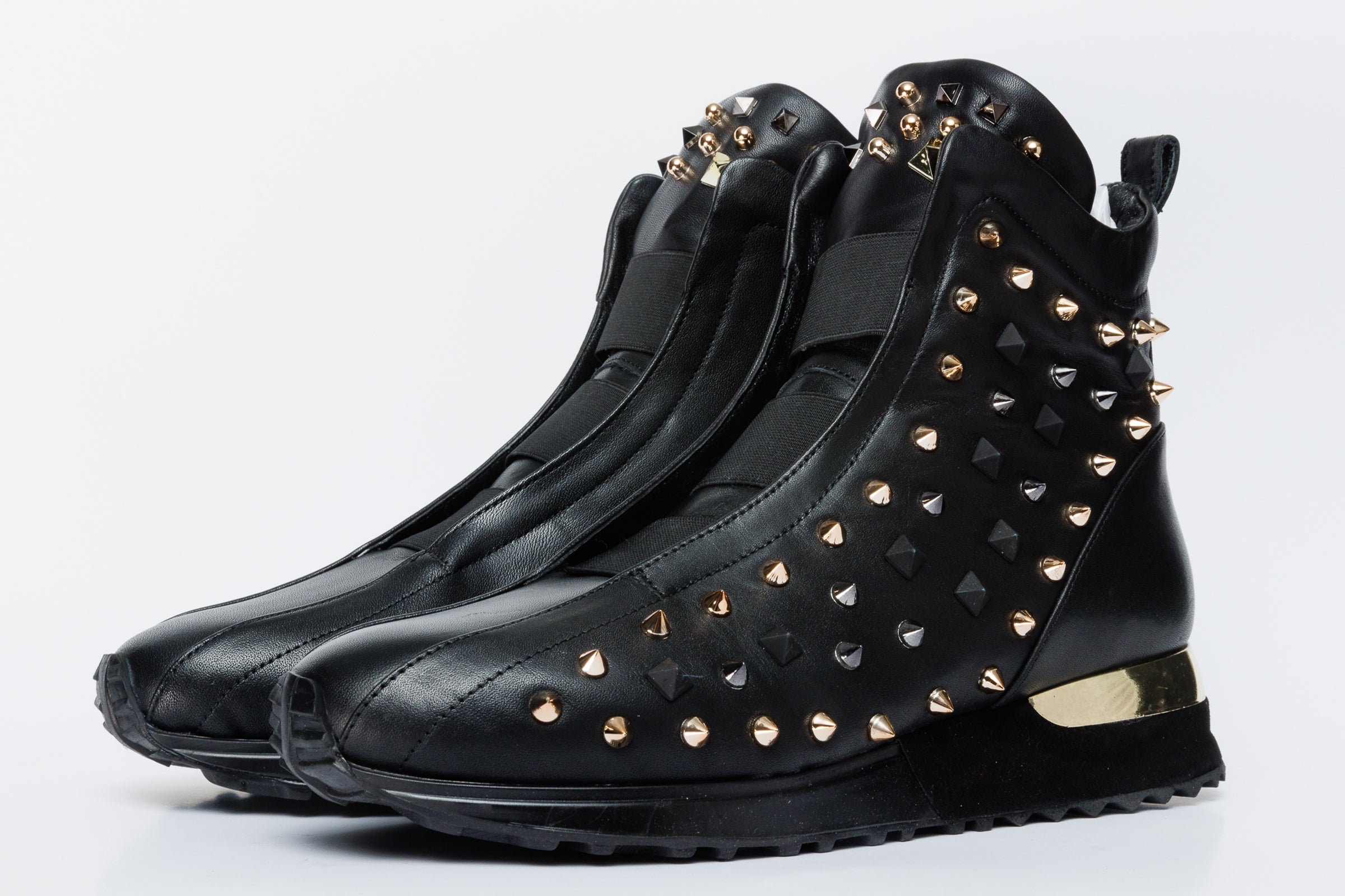 Infanta sneaker is a symbol of exquisite craftsmanship, meticulously crafted from premium-quality genuine calf leather. The addition of gold spike accessories mounted on the leather creates a stunning and eye-catching design. Each pair is entirely handmade, ensuring a unique and artisanal touch. The interior features a lining made from premium calf leather, coupled with a natural orthopedic pad, ensuring an extraordinary level of comfort. With a modern touch, the EVA outsole, along with gold accents on the heel, not only enhances the overall design but also adds a touch of richness. Crafted with Vinci’s unique mold, Infanta sneaker prioritizes both comfort and a distinct sense of style. In the final stages of production, each pair is meticulously hand-painted, bringing out the vibrancy of the leather and adding a lively finish.