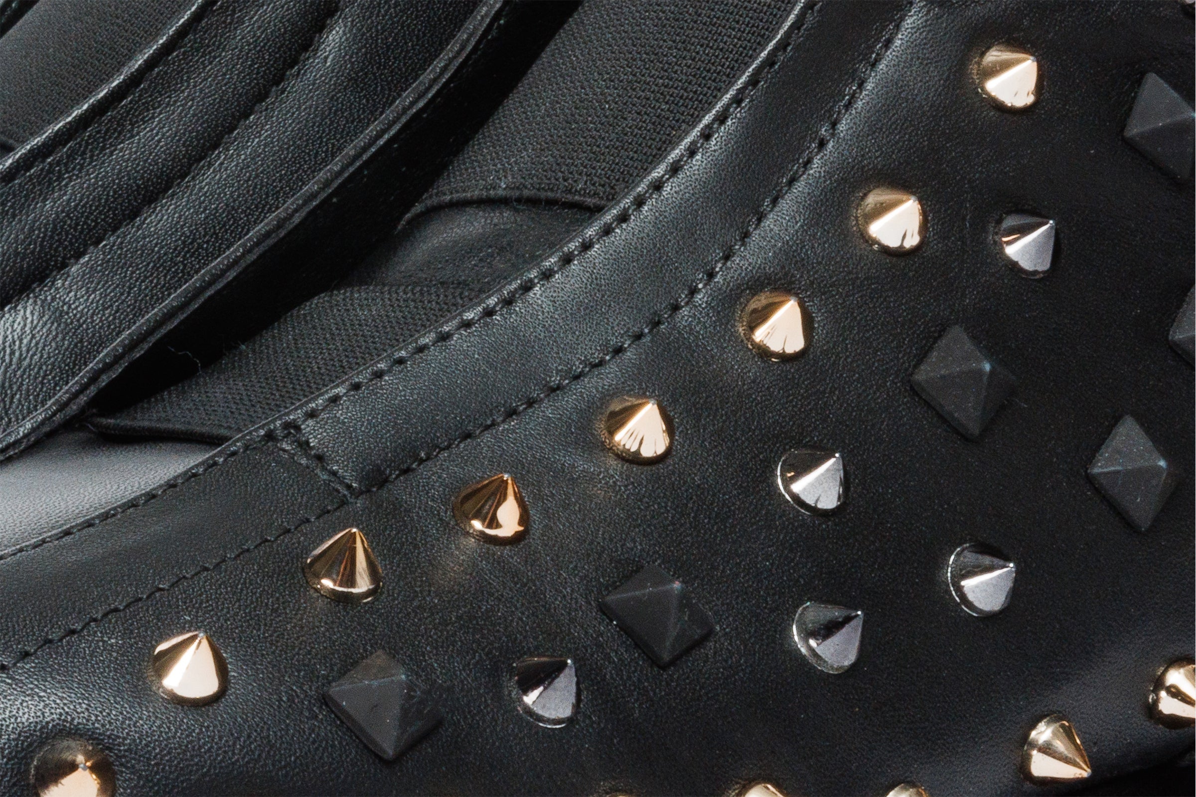 2. Eye-Catching Gold Spike Accessories: The addition of gold spike accessories mounted on the leather creates a stunning and eye-catching design, adding a touch of edgy elegance.